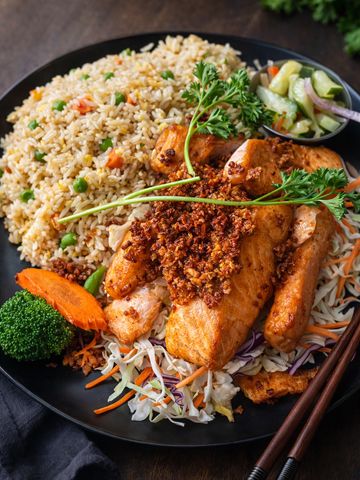 Fried salmon with garlic and black pepper.