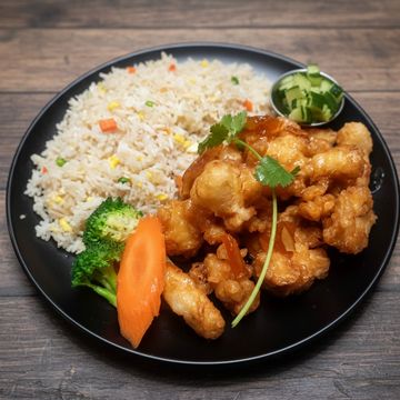 Crispy battered shrimp in our orange sauce.