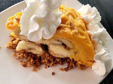 Toasted coconut crust topped with our signature homemade custard and freshly sliced banana.