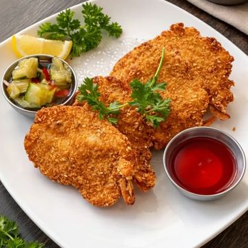 Shrimp meat, steamed in a flour wrapper served with a house special sauce.